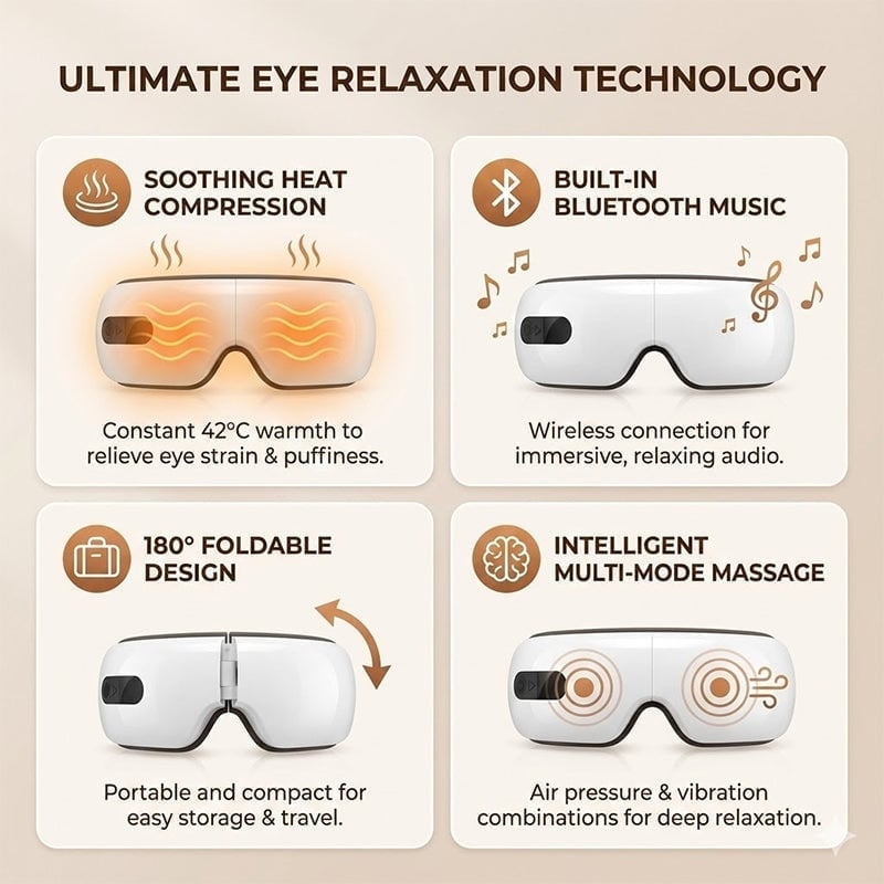 Heating: Provides soothing hot compress therapy to relieve eye fatigue, dryness, puffiness, and improve blood circulation while enhancing skin elasticity around the eyes.