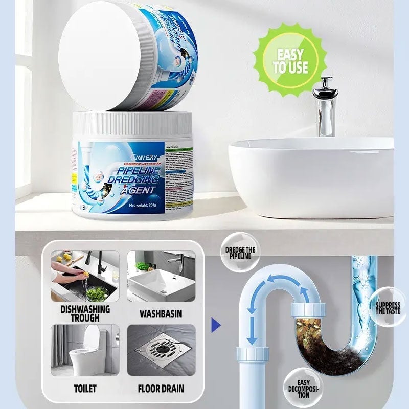 Fast-Acting Formula – Quickly dissolves and breaks down tough clogs, including grease, hair, soap scum, food waste, and mineral deposits.