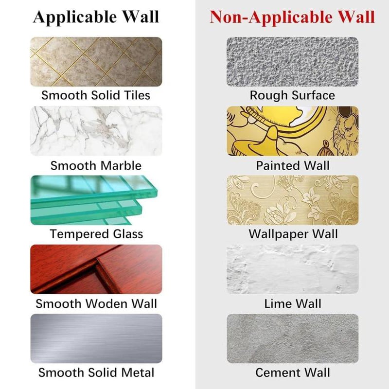 Please allow slight measurement deviations due to manual measurement. For best results, apply to smooth, non-porous surfaces like glass, mirrors, or polished tiles.