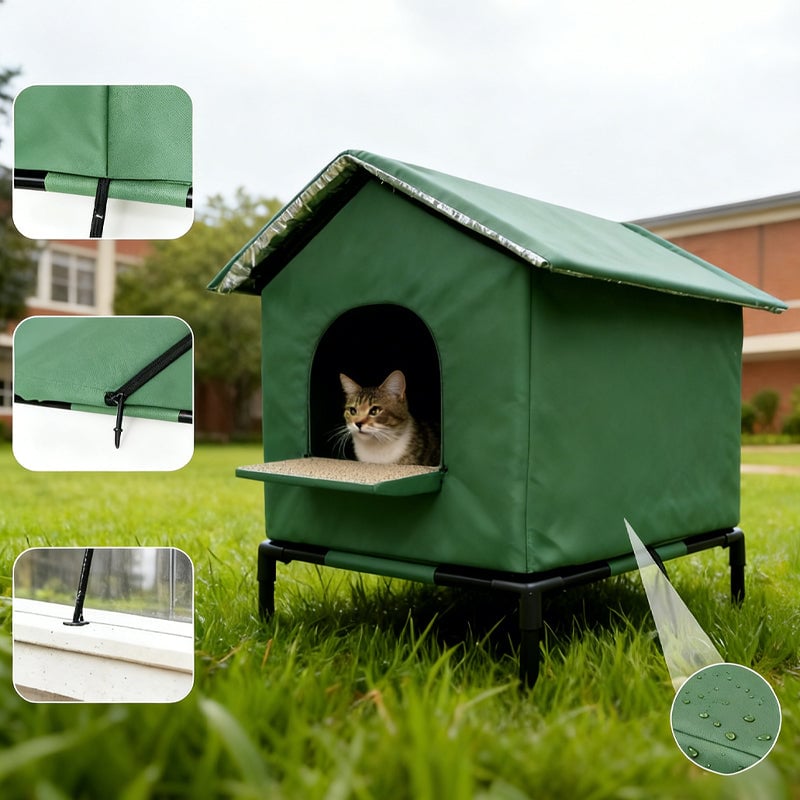 Elevated Cat House with Window – Waterproof & Insulated Outdoor Shelter for Stray Cats