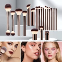 20-piece Makeup Brushes Set Includes: 4 double-ended kabuki brushes, 3 foundation brushes, 13 eye makeup brushes
