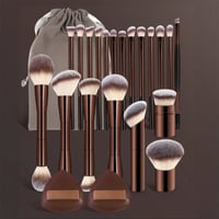 Specifications: 20-piece coffee-coloured makeup brush set + 2 powder puffs